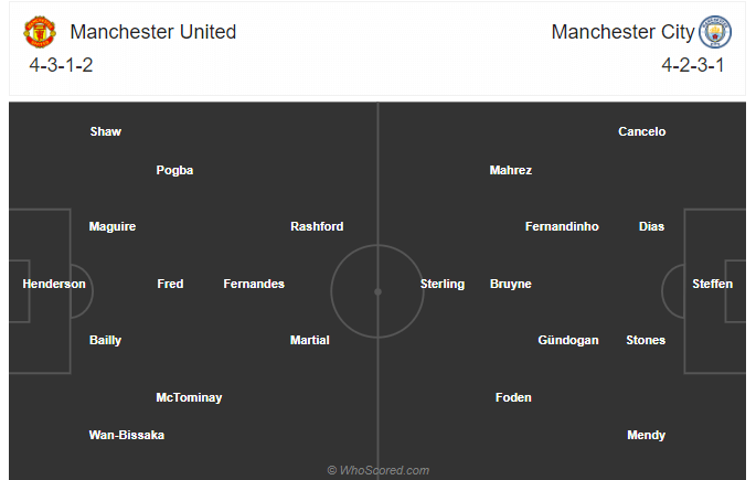 맨체스터 시티 :: 스털링-마레즈-데브라이너-로덴-페르난지뉴-권도간-다이어-스톤스-멘디-스테핀