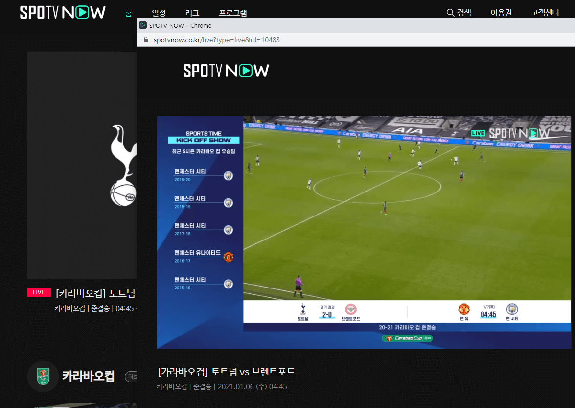 " 해외가입은 무료 " 이용권을 구매하지 않았다구 해서 무료로 제공해주는 스포츠 영상을 보지 못하는건 아닙니다. 저또한 SPOTV NOW 에 회원가입은 SNS계정 카카오로 하고 있지만, 금일에 있었던 카라바오컵 손흥민 토트넘 경기또한 실시간으로 온라인 화면에서 시청을 했어요 , 또한 하이라이트 영상또한 바로바로 실시간으로 시청이 가능하다는 사실입니다.