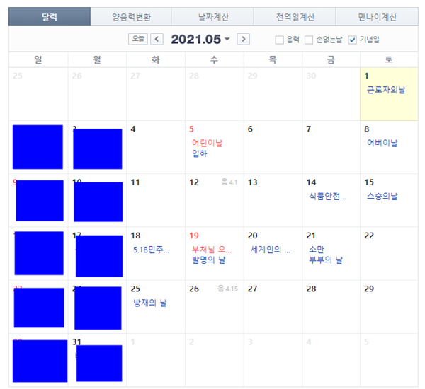 이렇게 현재 남아있는 주말을 제외한 휴장일이 3일이 되겠습니다. 이걸 달력으로 보다 보기 편하게 본다면요