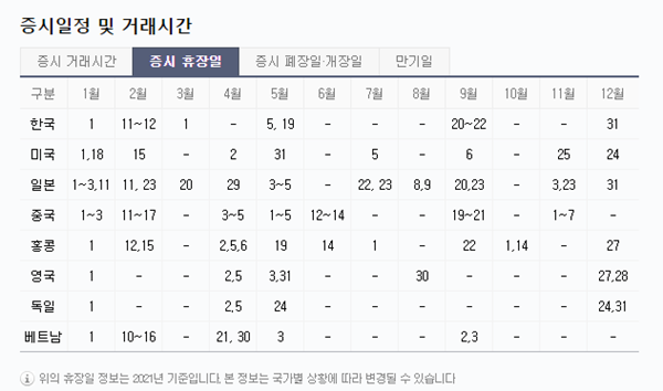하루하루 등락하는거에 큰 신경을 쓰지 않더라구요, 그래도 기본적으로 미국주식을 한다구 한다면 휴장일 정도는 알아두어야 한다고 생각하기에 2021년 상반기 휴장일 알아보도록 하겠습니다.