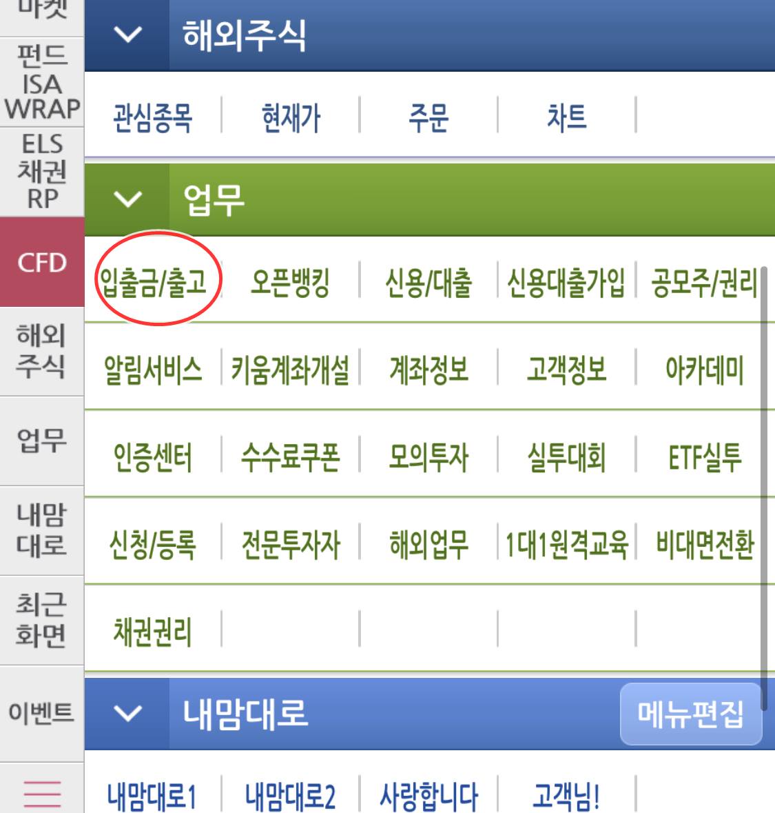 이번 포스팅은 가장 기본적인 예수금을 은행계좌로 출금하는 방벙에 대해서 알아볼까 합니다. 그러기 전에 일단 예수금부터 확인을 하셔야 겠지요, 매도후에 보통 예수금은 +2일 미국주식은 +3일까지도 이후에 예수금으로 들어온다구 보심됩니다.